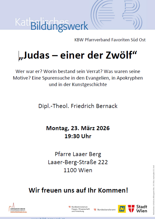Mo., 23.03.2026, 19:30 Uhr: Vortrag "Judas - einer der Zwölf",