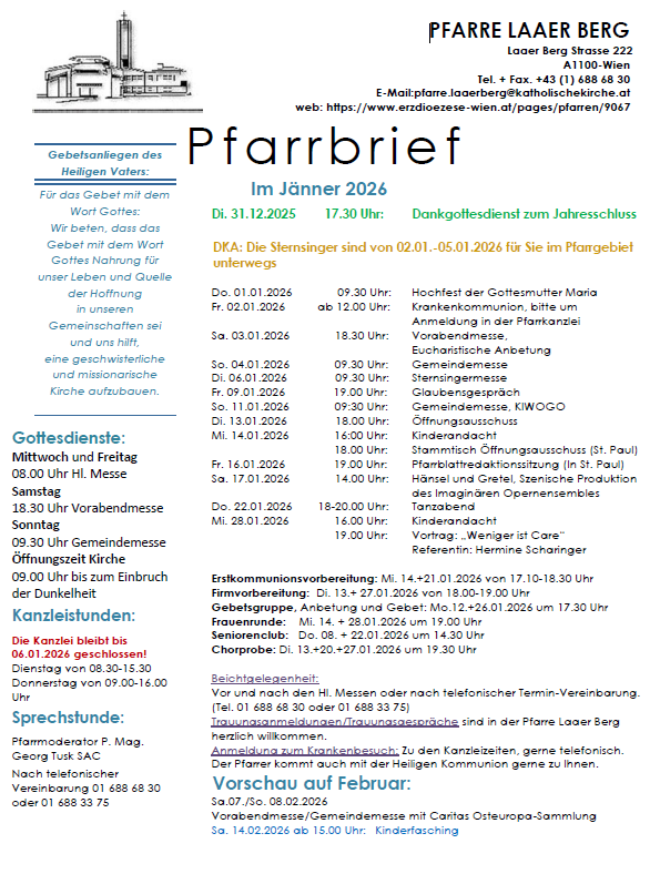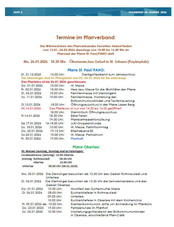 Pfarrbrief Jänner 2026