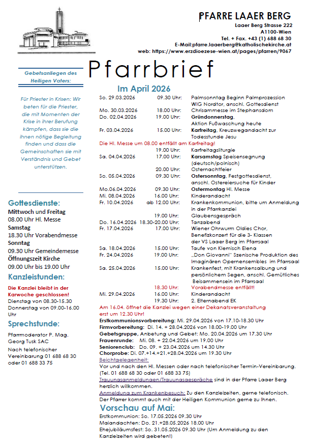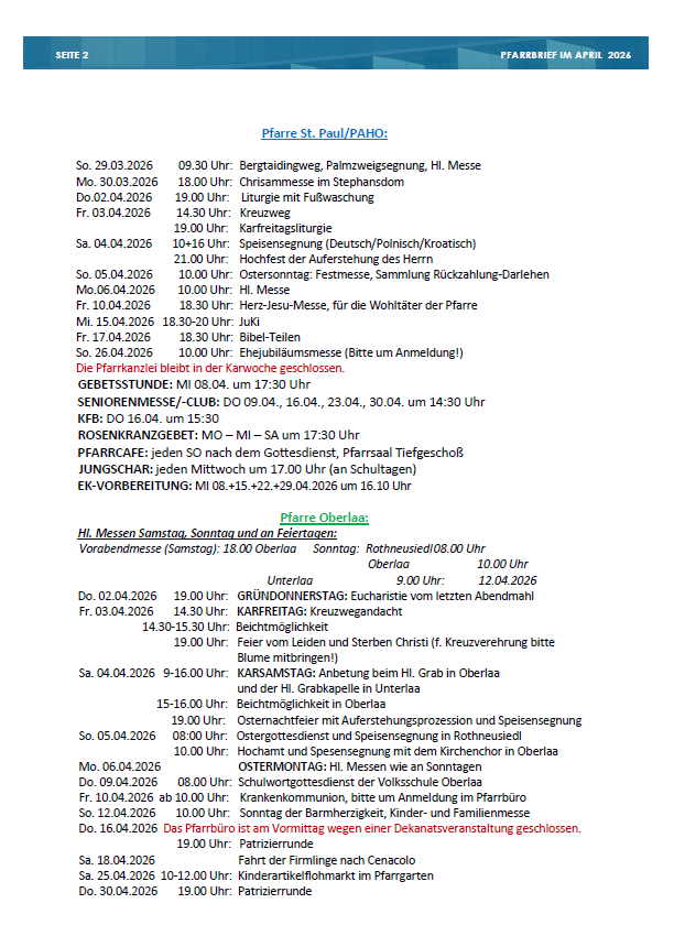 Pfarrverbandsnachrichten "aufblicken", Favoriten Süd-Ost -