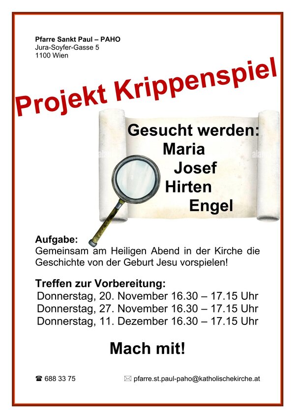 Wenn Sie die Ausstellung unter der Woche mit einer Gruppe / Schulklasse besuchen möchten, bitten wir um individuelle Terminvereinbarung über das Pfarrbüro.