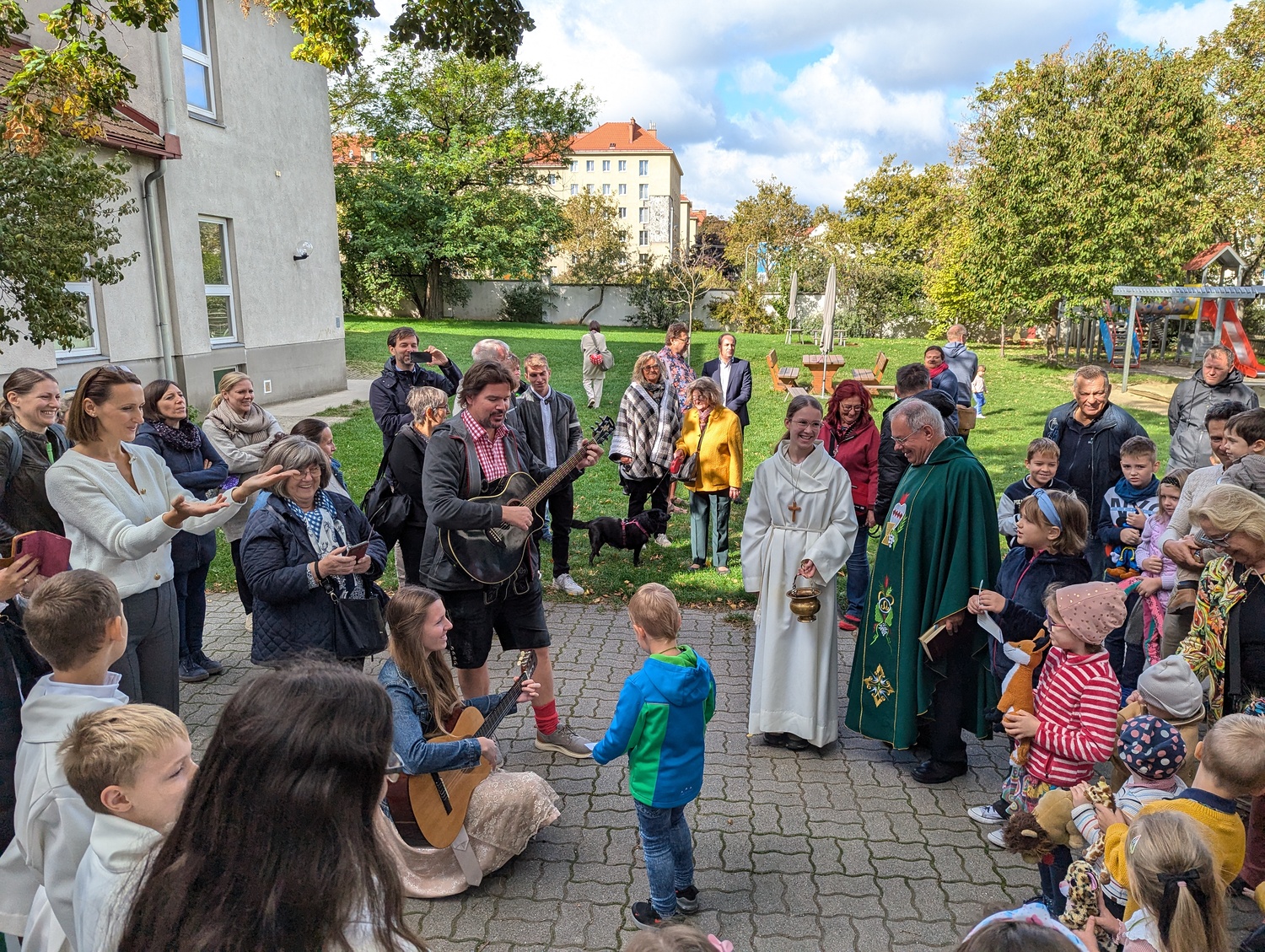 Dieses Jahr fiel die Erntedankmesse in der Apostelgemeinde zwar im kleineren Rahmen als gewohnt aus, dafür konnten wir sie bei strahlend schönen Wetter im Freien feiern. Die Tiersegnung war für Groß und Klein ein freudiges Erlebnis.