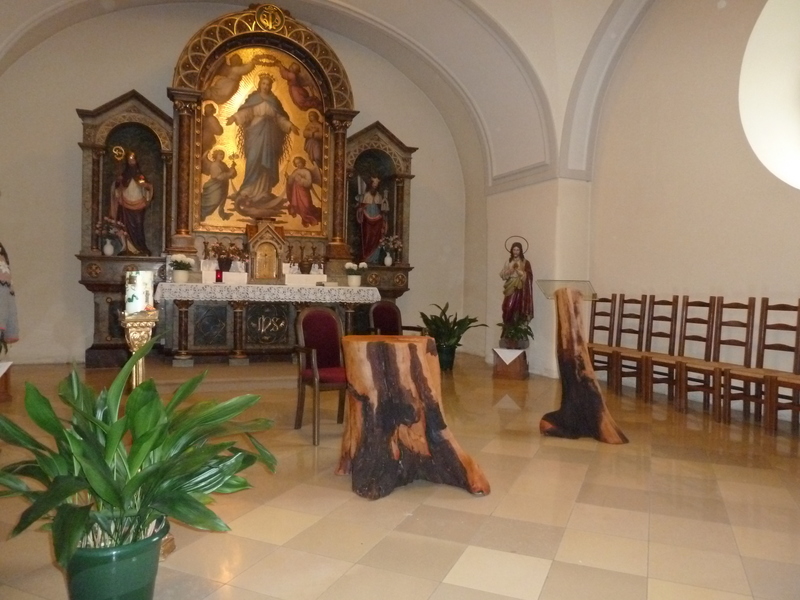 Für die Gestaltung von Altar und Ambo war daher klar, beides muss aus einem Baumstamm mit Wurzel gearbeitet sein.