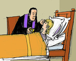 "Ist einer von euch krank? Dann rufe er die Ältesten [Priester] der Gemeinde zu sich; sie sollen Gebete über ihn sprechen und ihn im Namen des Herrn mit Öl salben. Das gläubige Gebet wird den Kranken retten und der Herr wird ihn aufrichten; wenn er Sünden begangen hat, werden sie ihm vergeben!"