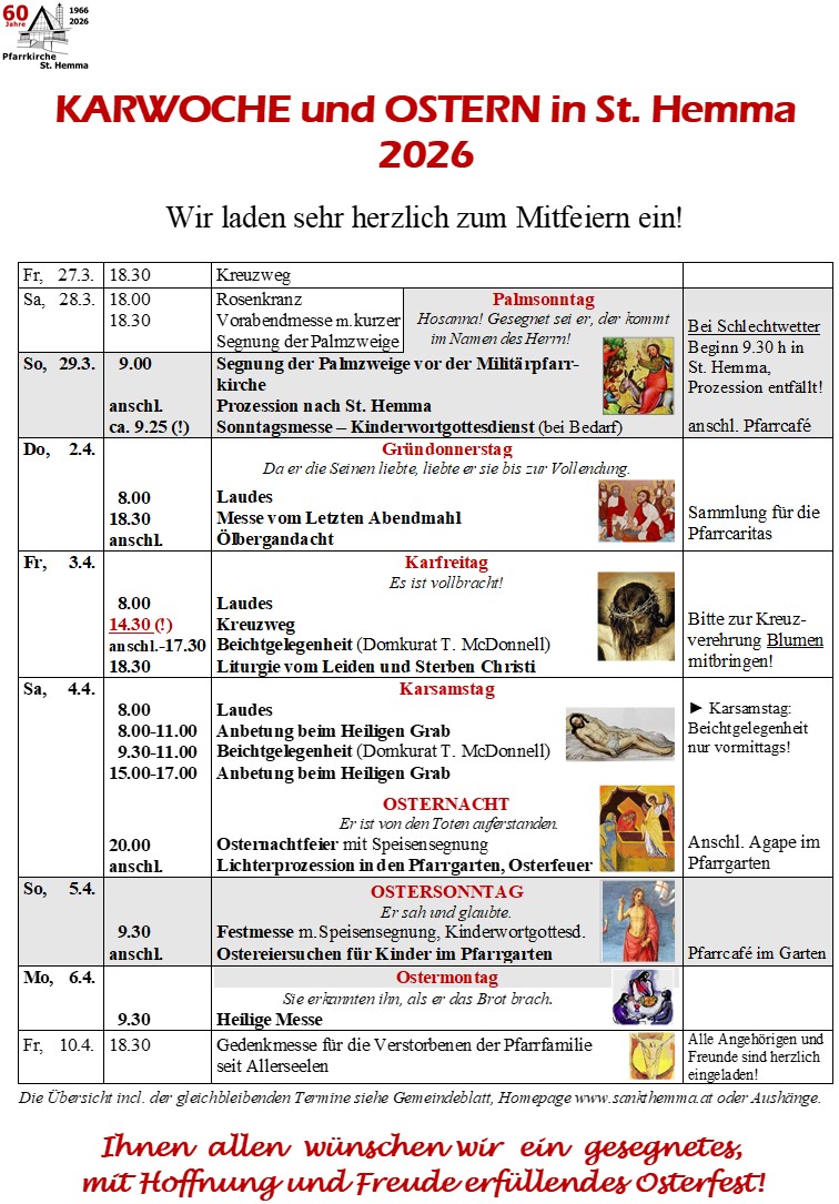 KARWOCHE und OSTERN 2026 in St. Hemma