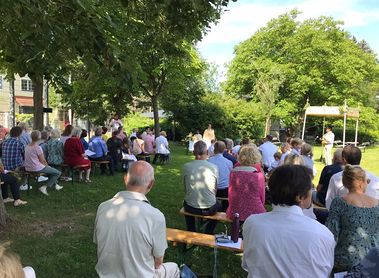 Bei schönstem Wetter konnten wir zu Fronleichnam ein starkes Zeichen unseres Glaubens in der Öffentlichkeit zeigen. Nach einer Feldmesse am Viktor-Kutschera-Platz im kühlen Schatten der Bäume zogen wir in einer Prozession mit dem Allerheiligsten durch die Robert-Fuchs-Gasse in unsere Pfarrkirche zum Schlusssegen.
