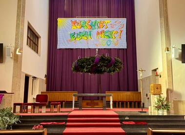 20m² gegen die weitverbreiteten Zukunftsängste in der Krim-Kirche: trotz Kriegsängsten, Wirtschaftskrise, Klimakatastrophe- Gott ist an unserer Seite, in allen Höhen und Tiefen. Darauf vertrauen wir, das ist unsere Adventbotschaft.
