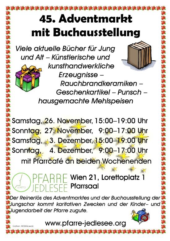 Der Reinerlös des Adventmarktes und der Buchausstellung der Jungschar kommt karitativen Zwecken und der Kinder– und Jugendarbeit der Pfarre zugute.
