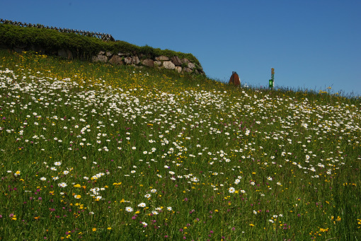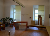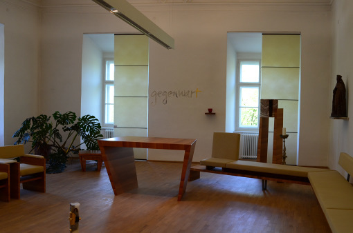 • vier blätterartige Rundungen, die durch einen fünften Kreis zusammengehalten werden, bedeuten den Kontaktpunkt zwischen Himmel und Erde und zugleich das Herz, das alle widerstrebenden Kräfte vereint und belebt.