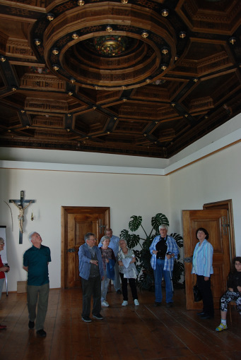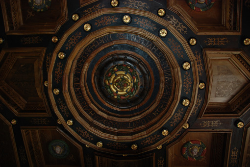 • Das Obergewand der schönen Dame ist grünlich-blau, trägt also die Farbe, die den Fürsten vorbehalten war. Und es ist geschmückt mit 48 goldenen Sternen, das bedeutet: die Frau ist mächtiger als die vielen Sterne, die die Indios als Götter verehrten.