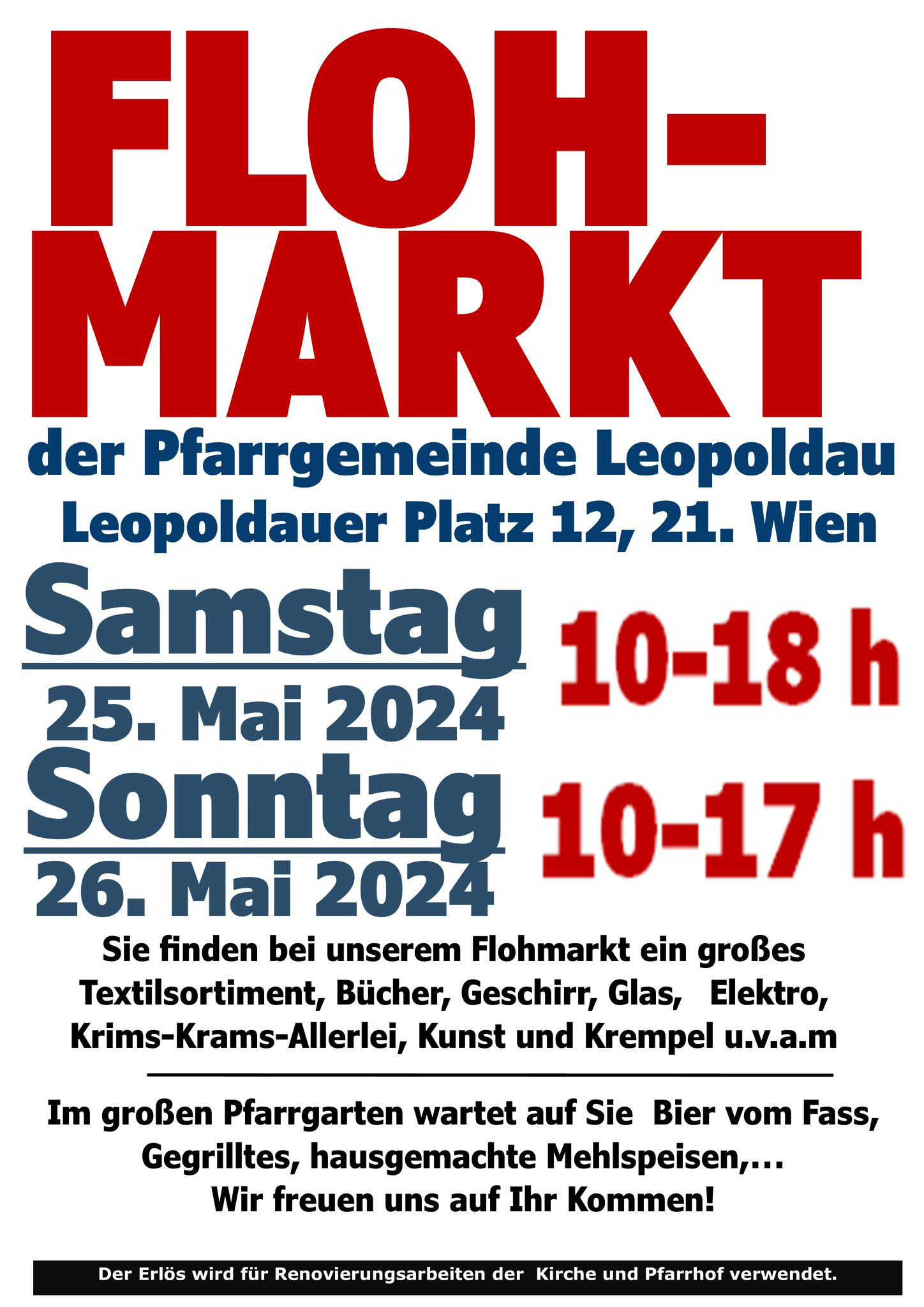 Alle Jahre wieder um Pfingsten herum gibt es einen großen Flohmarkt in der Pfarrgemeinde Leopoldau.