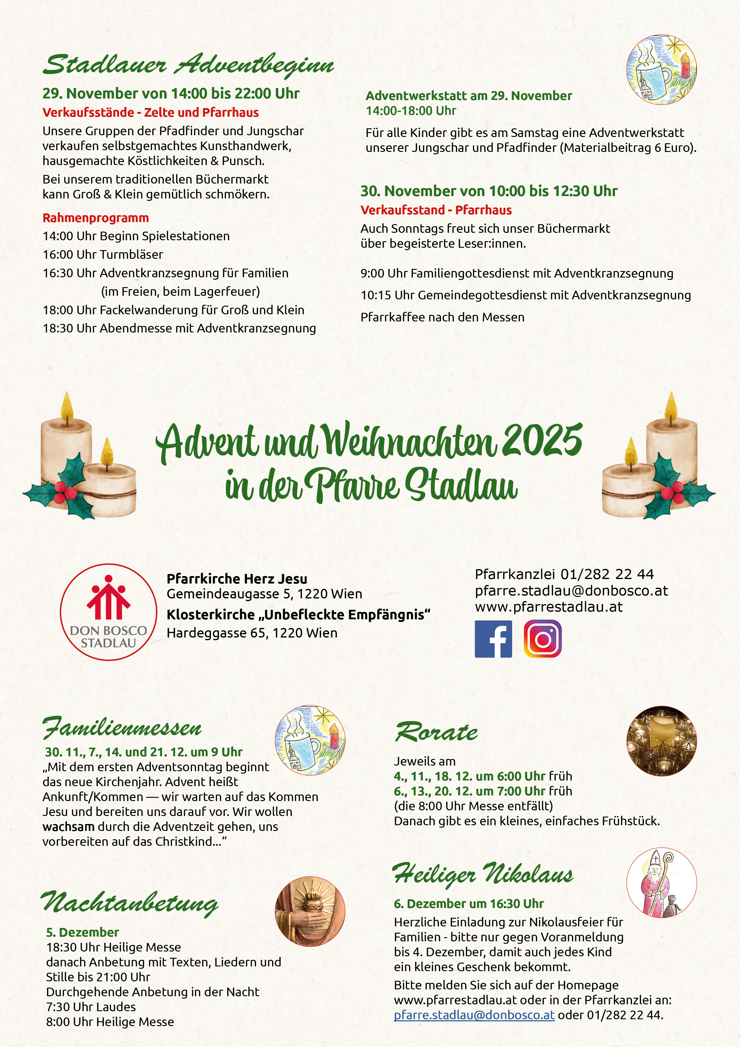 Anmeldungen für Taufen, Erstkommunion, Firmung, Hochzeiten, Begräbnisse und Wiedereintritt, etc.