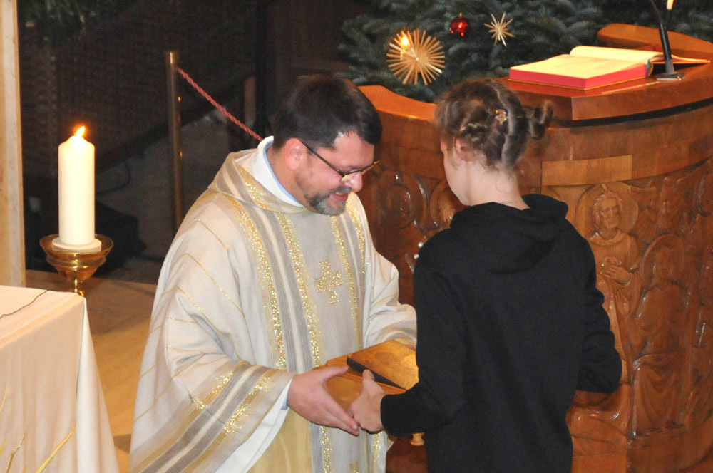 Die Pfadfinder überbrachten wie jedes Jahr das Licht aus Bethlehem als Zeichen für den göttlichen Frieden und die Firma Ströck sponserte erneut 1000 Lebkuchensterne. Die reichten gerade aus, da sich tatsächlich jedesmal die Kirche bis auf den letzten Platz füllte.
