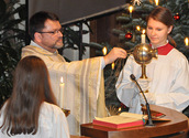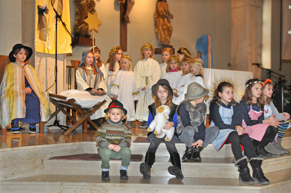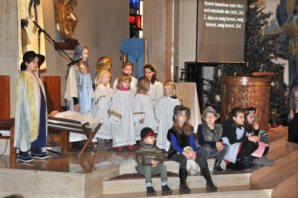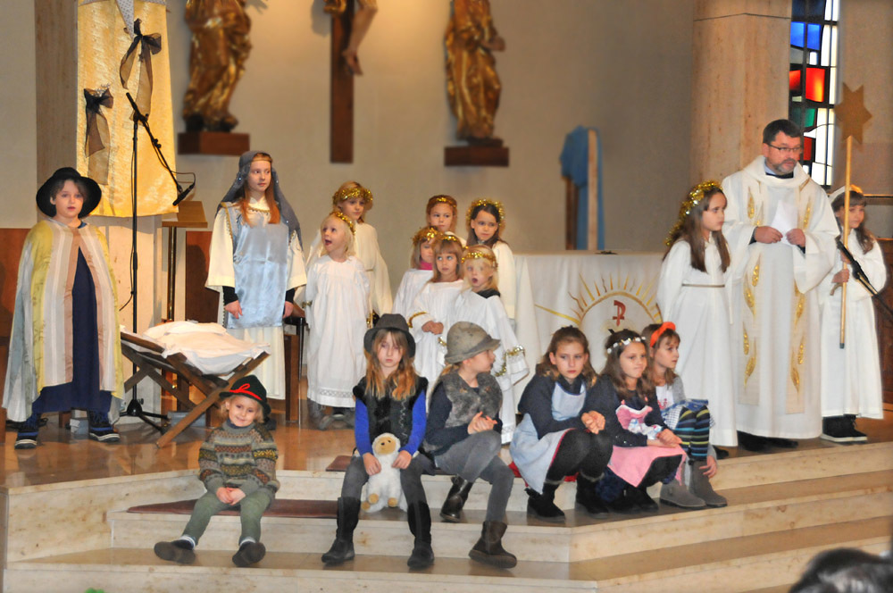 Auch wir sehen oft keine Perspektive, geraten in schwierige Lebensumstände und fühlen uns verlassen. Die Hirten zeigten sich hingegen mutig, zuversichtlich und wurden dafür mit dem Finden des Jesukindes belohnt und es ist ihnen sofort klar: da ist etwas Großes passiert: Denn in diesem kleinen Kind wird die Liebe Gottes sichtbar. Das, was wir tun müssen, ist selber offen, „Krippe“, für ihn zu werden, wie P. Sigi spätabends dann erklärte.