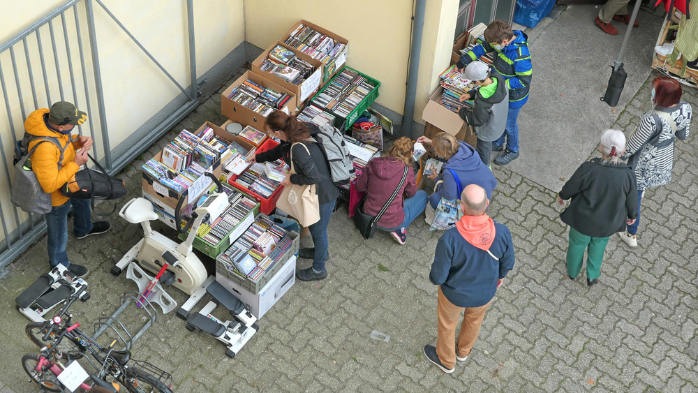 Zum Glück machte auch das Wetter mit und rechtzeitig vor dem Regen wurde alles von zahlreichen helfenden Händen in Kisten für den Frühjahrsflohmarkt 2021 verpackt.