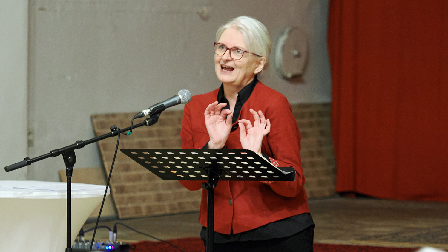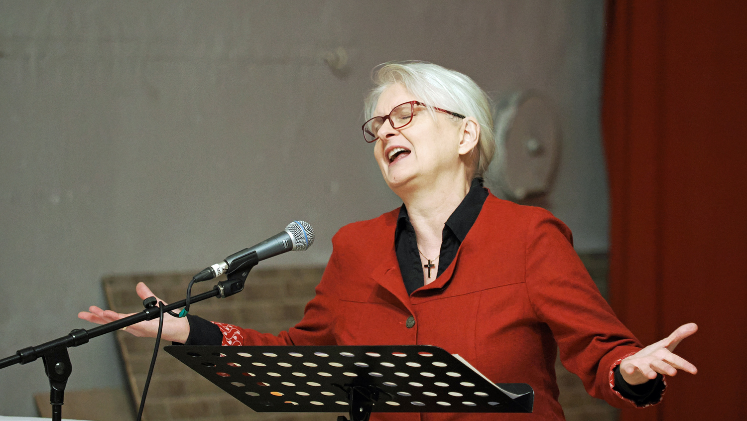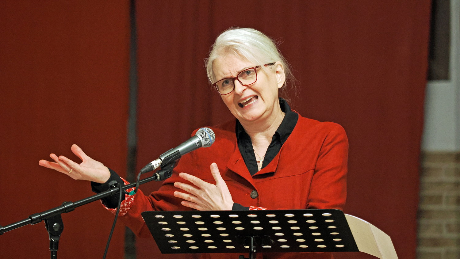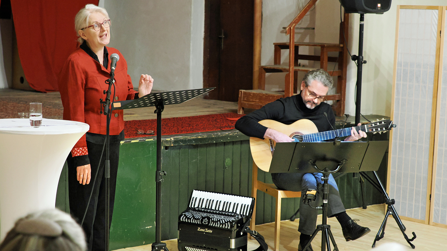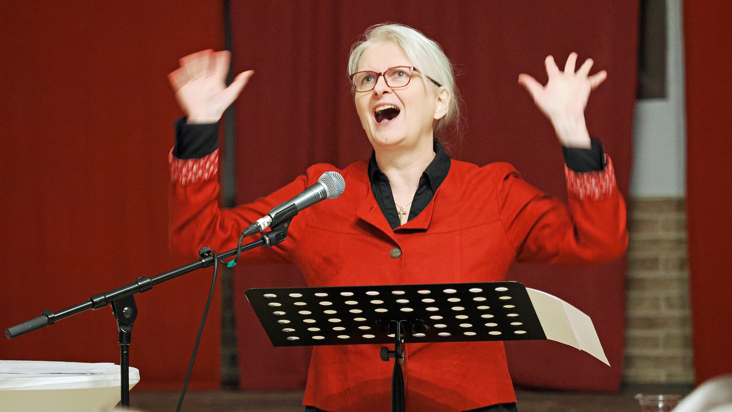 Bei den schwungvollen Liedern konnte das Publikum teilweise mitsingen und mitmachen. Diese wurden von DI Thomas Vogler sehr einfühlsam und professionell musikalisch begleitet. Die 10 Plagen, die Moses dem Pharao angedroht hatte, gestaltete Frau Birnbaum zu einem „Mitsing-Gstanzl“.