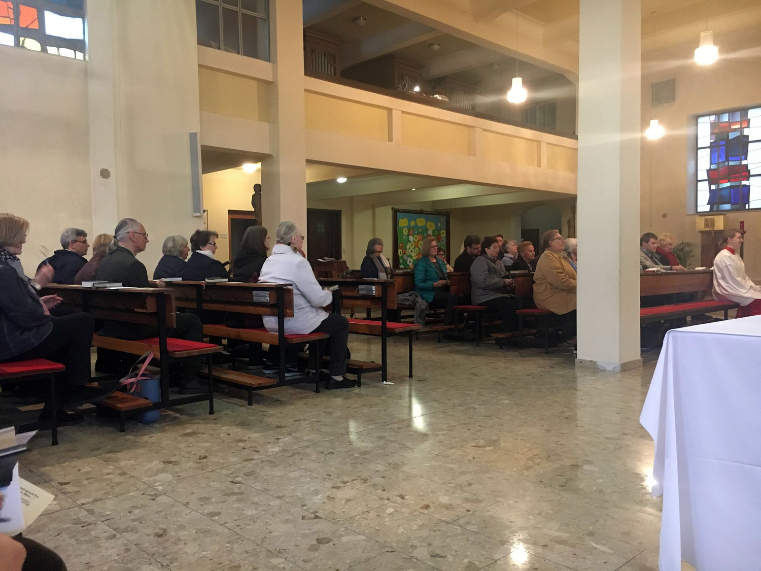 Am Karfreitag gedenken wir des Leidens und Sterbens Jesu von Nazareth. Die Leidensgeschichte wurde stimmungsvoll durch passende Lieder verstärkt. Nach den Großen Fürbitten haben wir das Kreuz verehrt. Das Kreuz ist für uns Christen ein Siegeszeichen - es ist Symbol für die Auferstehung; und nur deshalb verehren wir es: als Zeichen einer Liebe, die stärker ist als der Tod. Jede Person hatte die Möglichkeit einen persönlichen „Schuldschein“ an das Kreuz zu heften als Dank, das Jesus jeden einzelnen von uns durch sein Kreuz erlöst hat.