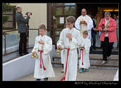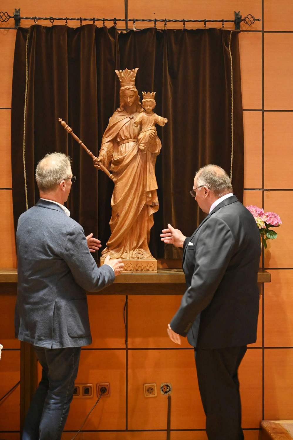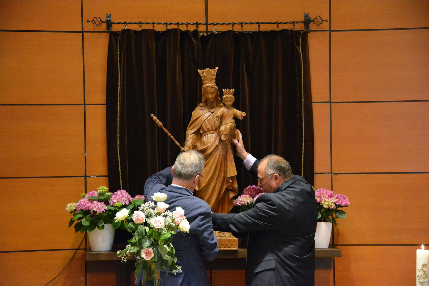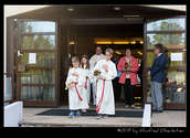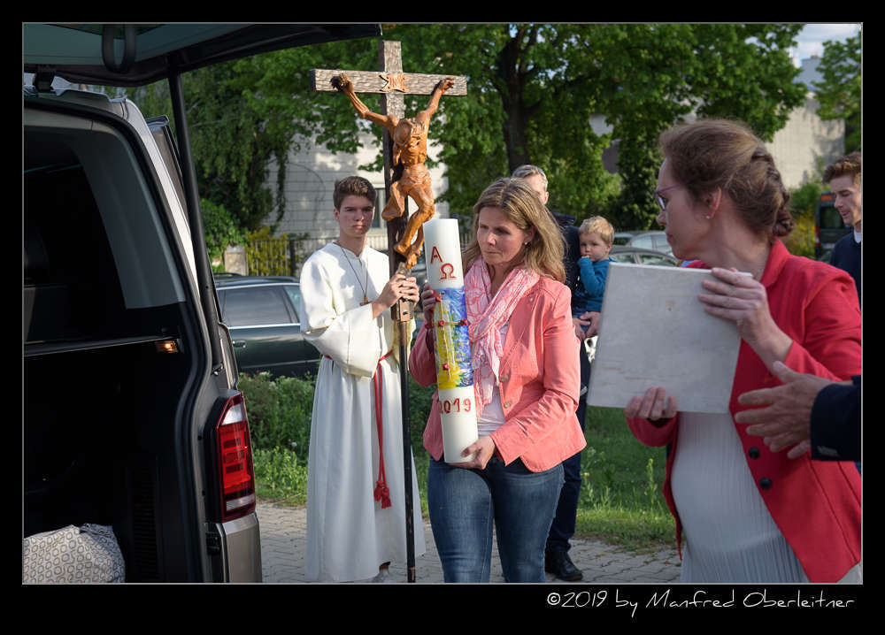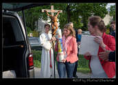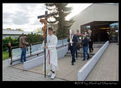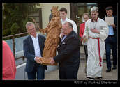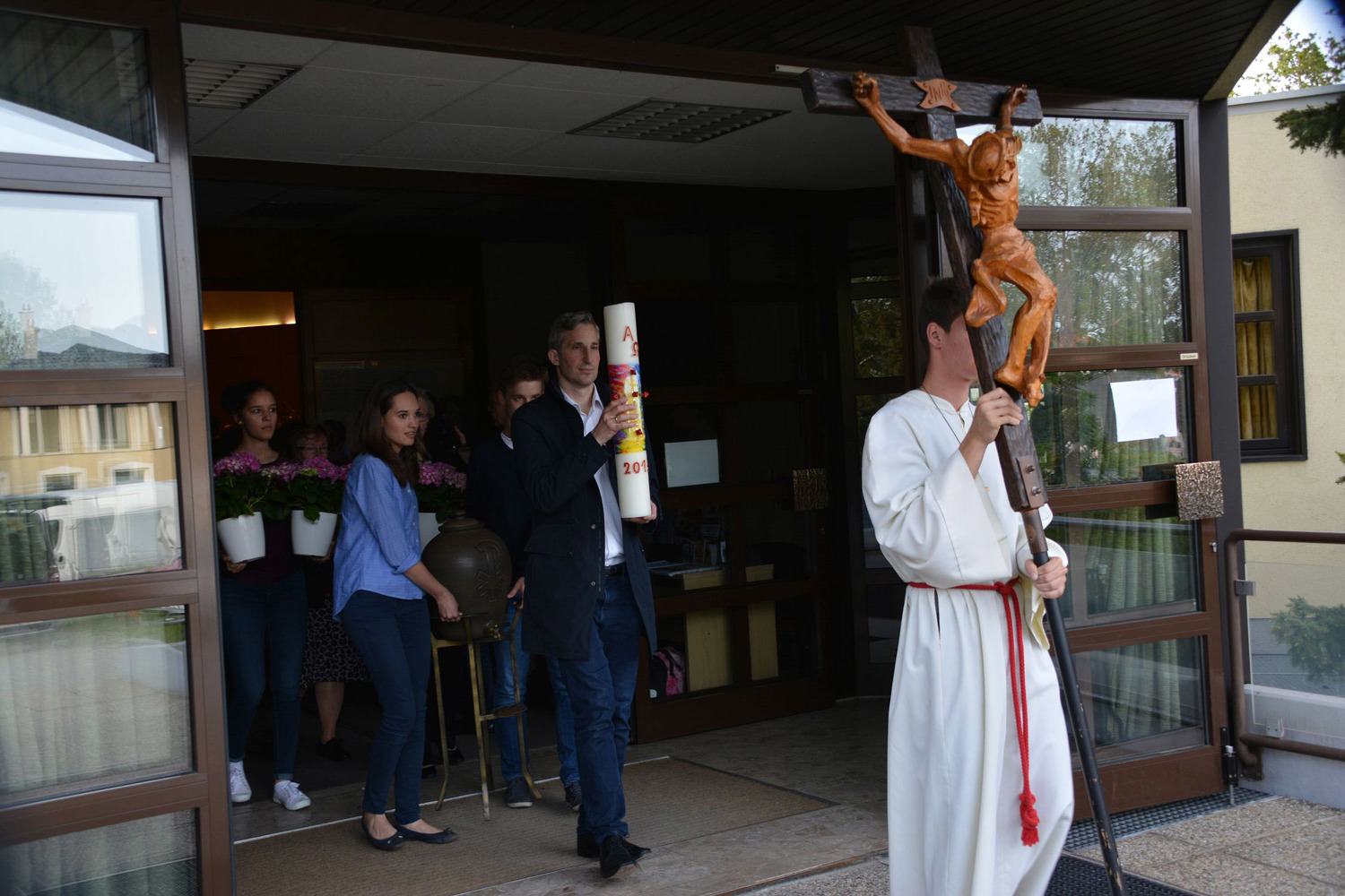 Danach wurde es still in der Kirche. P. Rudolf Osanger, der ehemalige Provinzial der Salesianer Don Boscos, verlas das Profanierungsdekret von Kardinal Christoph Schönborn. Die gedrückte Stimmung war spürbar, während sich ein Prozessionszug formierte, um Gegenstände, wie Weihwasser, Blumen, das Lektionar, die Osterkerze und das Allerheiligste aus der Kirche zu tragen. Die Ministranten führten den Zug mit dem großen Kreuz der Kirche an. Die Muttergottes –Statue, die Namensgeberin der Kirche, und der Grundstein mit Bauurkunde wurden zuletzt aus der Kirche hinausgetragen.