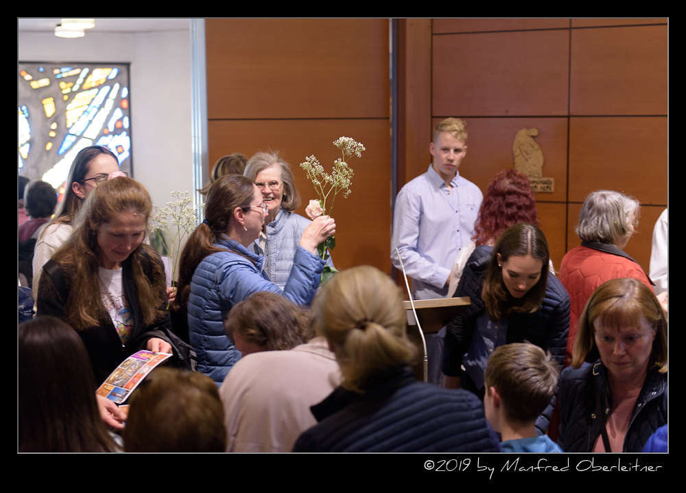 Am Ende durften sich die Messbesucher die Blumen und eine kleine Fotocollage mit Bildern der Kirche zur Erinnerung mitnehmen. Ein gemütliches Beisammensein mit einer ausgiebigen und liebevoll vorbereiteten Agape gab uns nochmals die Möglichkeit das Gute und Schöne der letzten Jahre in Erinnerung zu rufen.