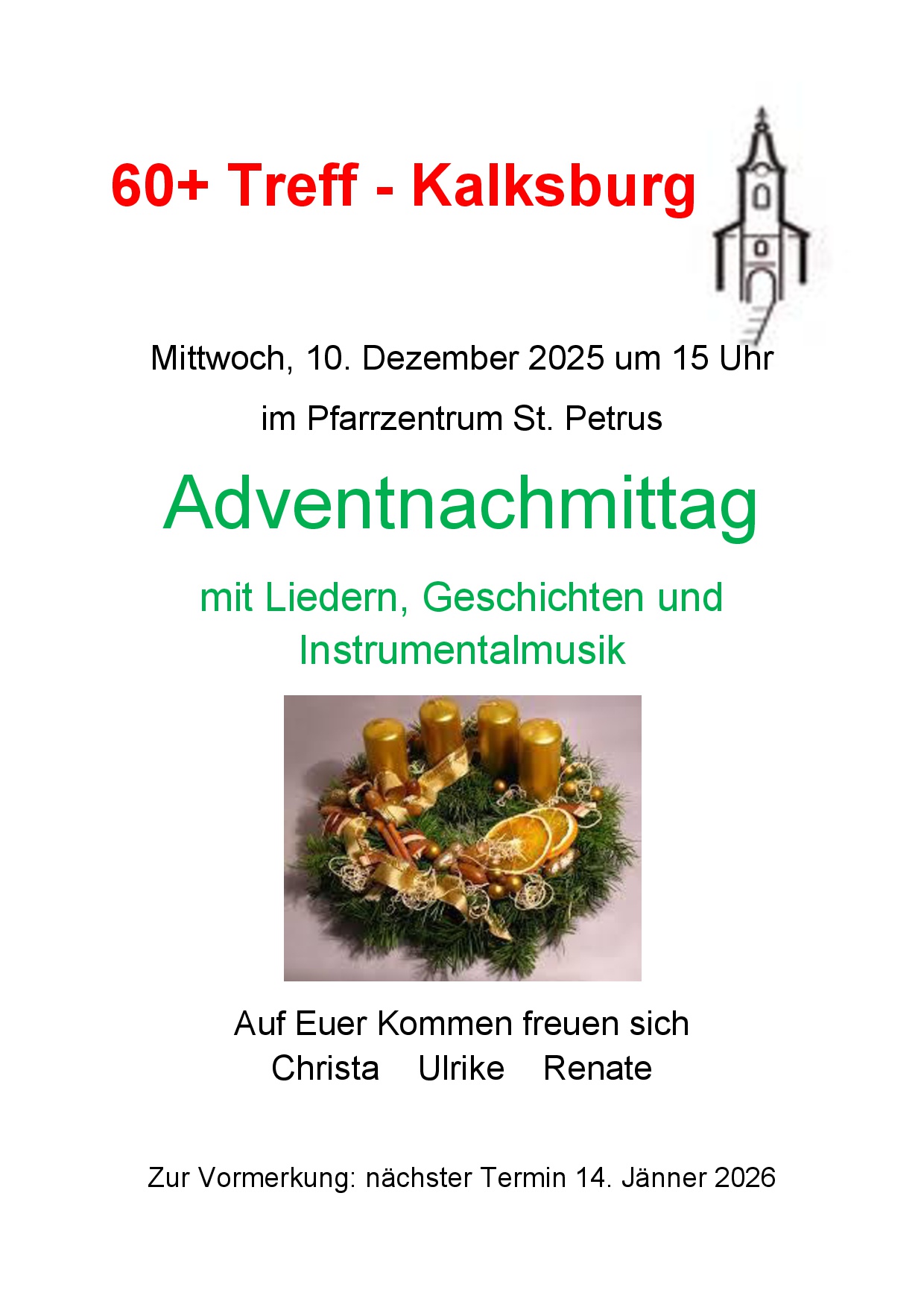 Bei Veranstaltungen und Hl. Messen der Pfarre Kalksburg wird zur Dokumentation des Pfarrlebens fotografiert oder gefilmt. Die entstandenen Aufnahmen können in den Medien der Pfarre und der Kirche veröffentlicht werden. Sollten Sie damit nicht einverstanden sein, bitten wir dies im Pfarrbüro bekannt zu geben.