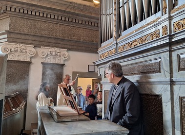Nach fast zwei Jahren Restaurierungsarbeiten wurde am So. 7. April die Orgel das erste Mal wieder gespielt, von Domorganisten Konstantin Reymaier. Bischofsvikar Dariusz Schutzki segnete die Orgel bevor die ersten Töne erklangen. Es war eine sehr stimmungsvolle Feier und schön die Orgel wieder spielen zu hören.