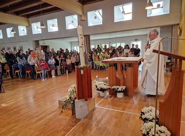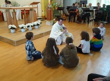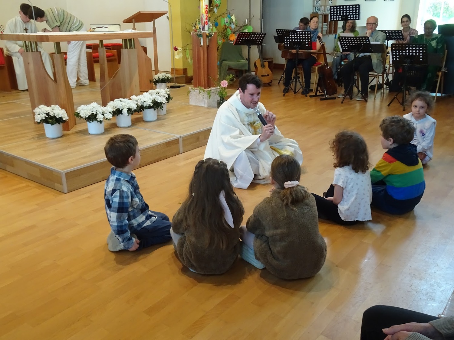Mit einer Tauferneuerung beginnt die Familienmesse am 3. Sonntag der Osterzeit. Die Kinder dürfen sogar absammeln gehen, (Alle Fotos siehe Bildergalerie 2026)