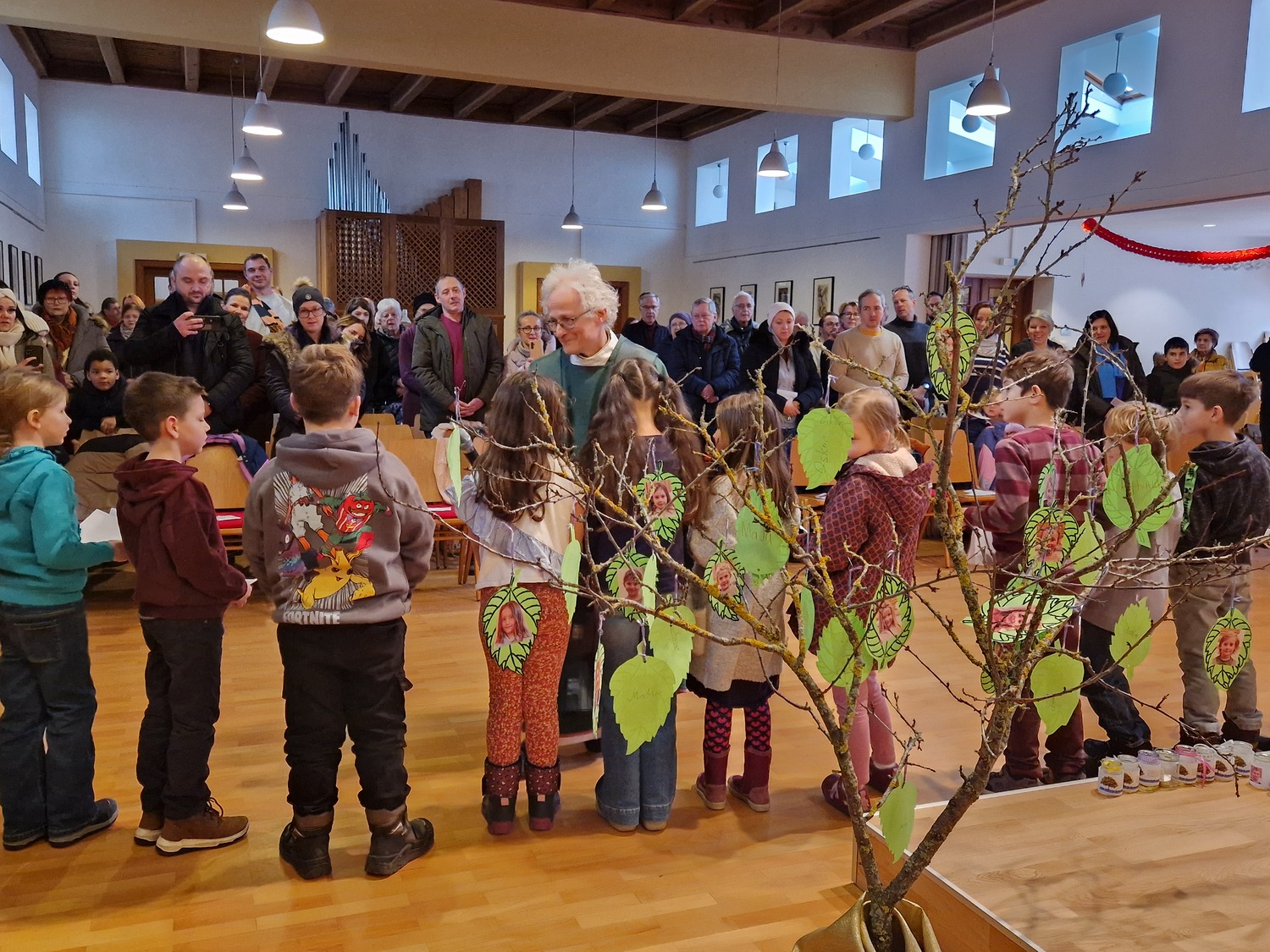In der Hl. Messe am 3. Sonntag im Jahreskreis stellten sich die Erstkommunionskinder der Gemeinde vor und der trockene Baum in der Kirche bekam Blätter mit Namen und Fotos. (alle Fotos siehe Bildergalerie 2026)