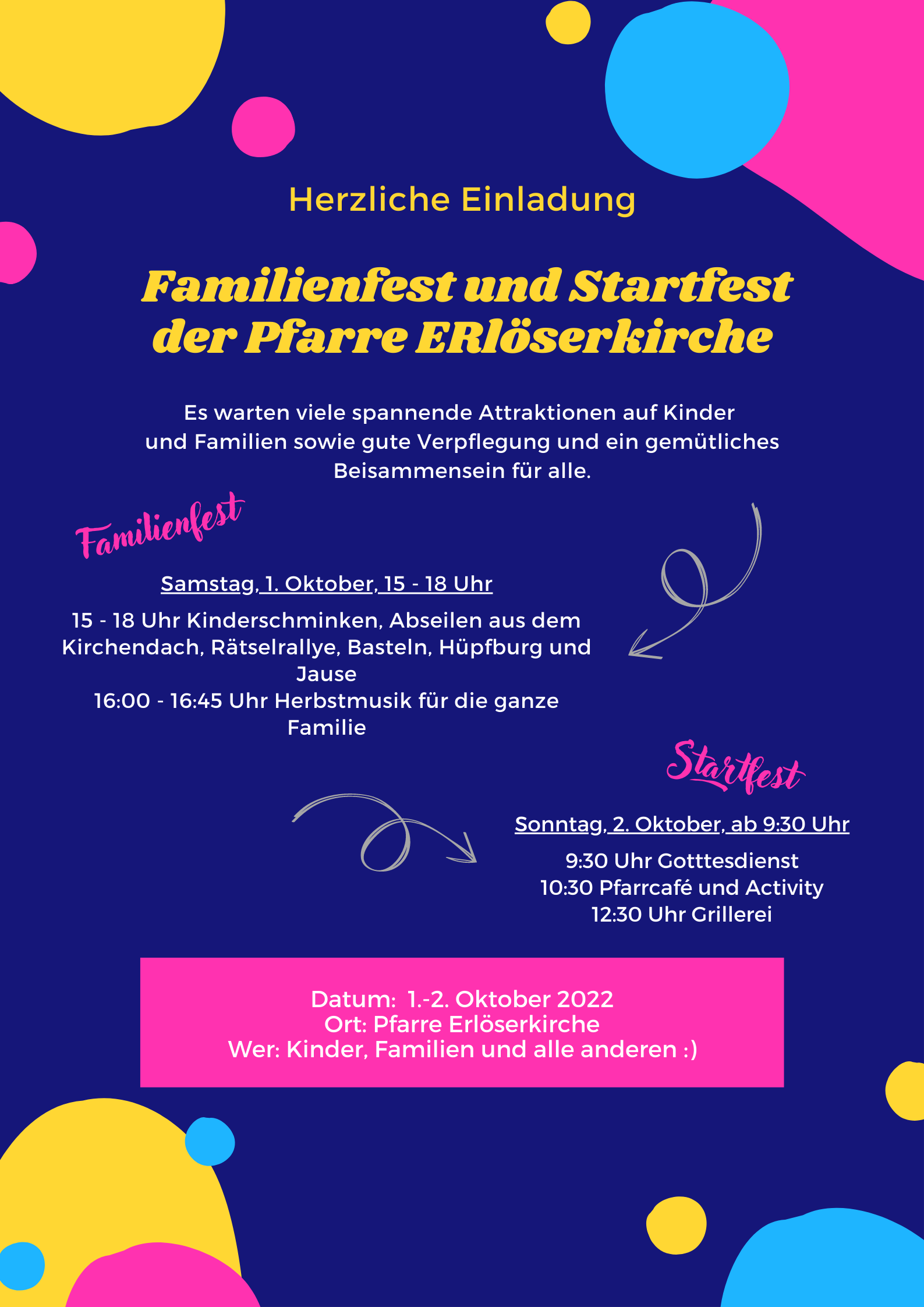 Einige Wochen ist das neue Schul- und Arbeitsjahr schon alt. Zeit, um offiziell den Start zu feiern, mit den Familien einen bunten, lustigen Nachmittag zu verbringen und in der Pfarre Gemeinschaft zu genießen.