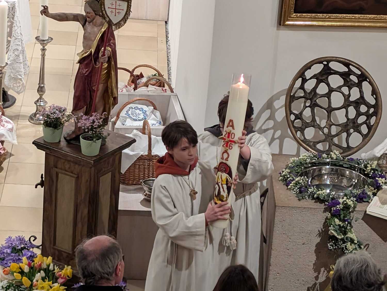 Die feierliche Auferstehungsmesse wurde musikalisch begleitet vom Kirchenchor. Es wurde auch ein Kind getauft, wie es schon seit der frühen Kirche üblich war. Anschließend gab es vor der Kirche noch eine Agape, wo gemeinsam Brot und Wein geteilt werden konnte.