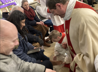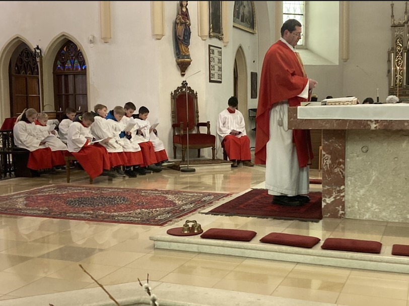 In diesem Jahr konnte wegen des regnerischen und stürmischen Wetters, die Palmweihe nicht vor dem Pfarrheim stattfinden. So wurde die gesamte Liturgie direkt in der Kirche gefeiert.