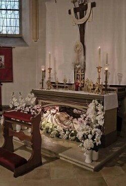 Karfreitag zur Todesstunde unseres HERRN wurde der Kreuzweg gebetet, im Anschluss das Grab gerichtet und um 18 Uhr die Karfreitagsliturgie gefeiert.