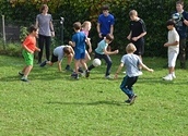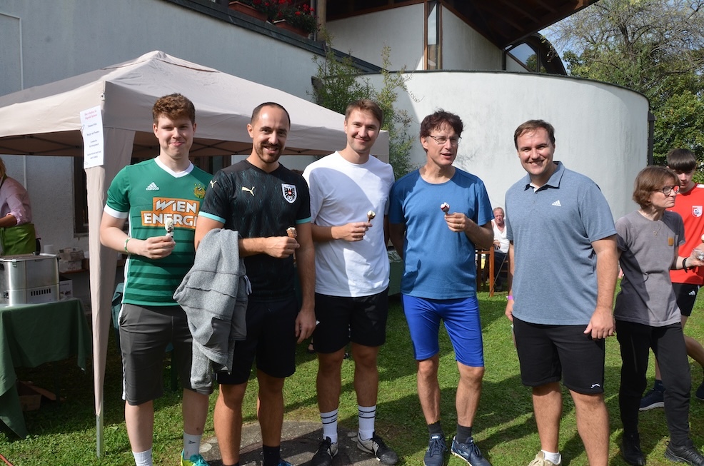 Nach dem Primizsegen freuten sich alle über die köstliche Bewirtung, die dank vieler fleißiger Helferinnen und Helfer möglich wurde. Bei strahlendem Wetter genossen die einen das gemütliche Beisammensein im Pfarrgarten und angeregte Gespräche, während sich Kinder, Jugendliche und jung gebliebene Erwachsene beim spannenden Fußballturnier austoben konnten.