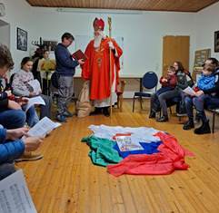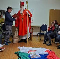 Gebete und weitere Lieder rundeten die Andacht ab. Ein besonderer Höhepunkt war der Besuch des Nikolaus, der die Kinder freundlich begrüßte, ihnen Mut zusprach und sie für ihr gutes Verhalten lobte. Zum Abschluss erhielt jedes Kind eine kleine Nikolausgabe, über die sich alle sehr freuten.