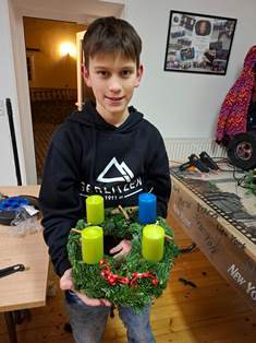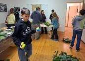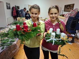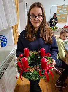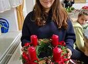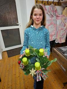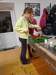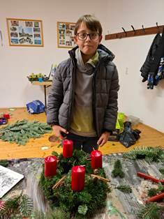 Mit Unterstützung von Dipl. Pass. Reini und Frau Monika Mädel banden sie die Zweige, befestigten Kerzen und schmückten die Kränze mit Schleifen, Zapfen und anderen dekorativen Elementen. Dabei wurde nicht nur die Kreativität gefördert, sondern auch das gemeinsame Arbeiten und gegenseitige Helfen.