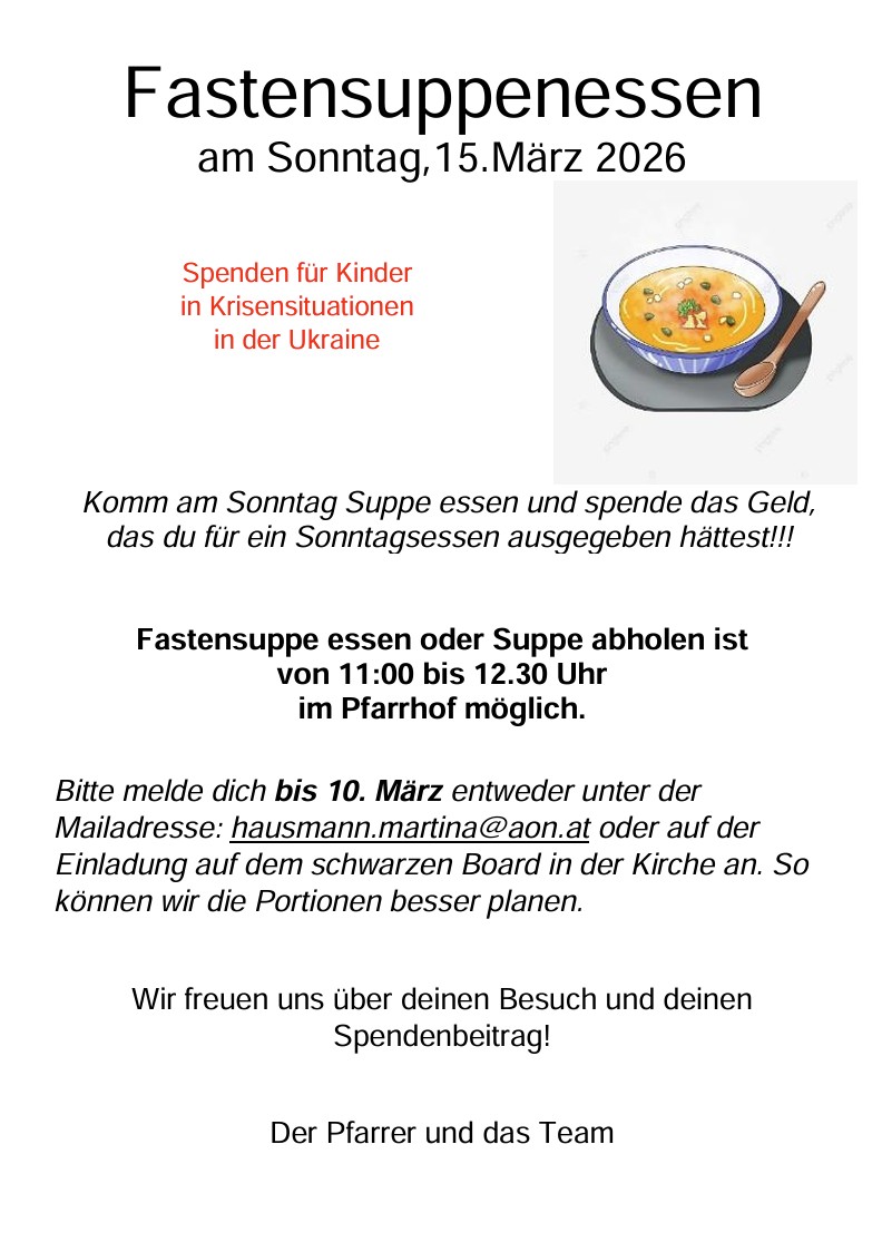 Am Sonntag, 15.03.2026 von 11 bis 12:30 Uhr im Pfarrhof.