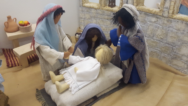 ...entsprechenden Kulissen veranschaulicht und liebevoll dargestellt. Die Herstellung dieser besonderen Figuren erfordert sowohl handwerkliches Geschick mit Liebe zum Detail, als auch das Vertiefen in die biblischen Texte, verbunden mit den eigenen Lebens- und Glaubenserfahrungen.