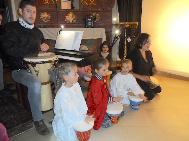 ...Mit großer Leidenschaft wurde gesungen, instrumental begleitet und hinter der weißen Leinwand unaufdringlich aber sehr eindrucksvoll die Geschichte vom kleinen Jesuskind nachgestellt. Herr Völker war mit seinen Weihnachtsgeschichten auch wieder fester Bestandteil des Adventsnachmittages. Zu guter Letzt wurden die WW-Voices beim Ausklang der Feier noch von den Kindern auf ihren Trommeln zu den Klängen von Shosholoza begleitet.