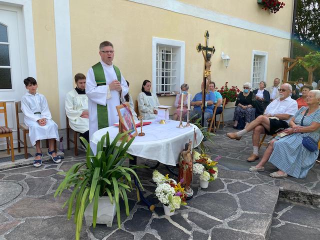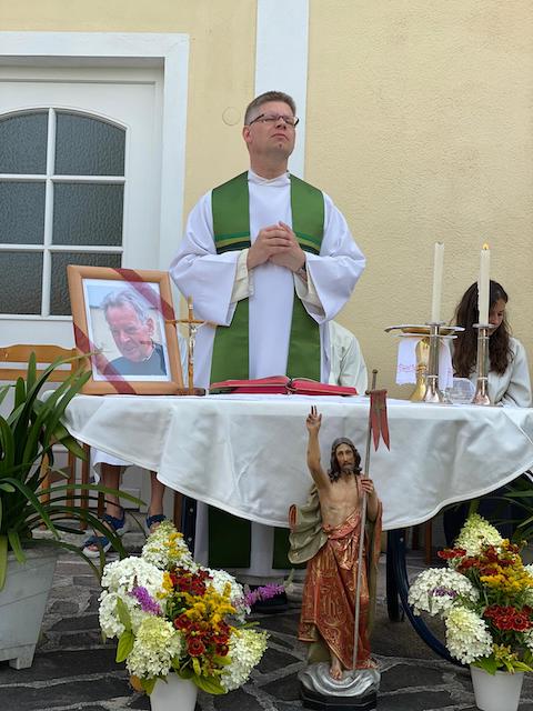 Die Sonntagsmesse am 2. August stand ganz im Zeichen des Gedenkens an Pater Norbert, Pater Bruno zelebrierte den Gottesdienst auf der Terrasse des Pfarrhofs und fand berührende Worte, die der versammelten Gemeinde Trost und Hoffnung gaben.
