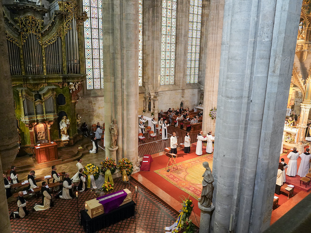 Am 13.8. war das Pontifikalrequiem für unseren verstorbenen Pater Norbert († 30. Juli 2020) und die Beisetzung auf dem Mönchsfriedhof im Stift Heiligenkreuz. Schon zum aufgebahrten Sarg sind Hunderte gekommen. Beim Begräbnis war die Teilnahme auch besonders hoch - wenn auch unter Coronabedingungen. Sogar Landeshauptfrau Johanna Mikl-Leitner ließ einen Kranz niederlegen. Viele Vertreter aus den Gemeinden und Pfarren in denen Pater Norbert wirkte, waren gekommen. Vor allem aus der Pfarre Sulz, in der er zuletzt 20 Jahre lang wirkte, waren viele gekommen: die politische Vertretung, Pfarrgemeinderat, Jugend, Feuerwehr, ... dazu noch Bergfreunde, Wegbegleiter und die Gemeinschaft 'Marriage Encounter'. Gott sei unserem Pater Norbert jetzt sein ewiger Lohn, sein Friede und seine Freude.