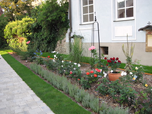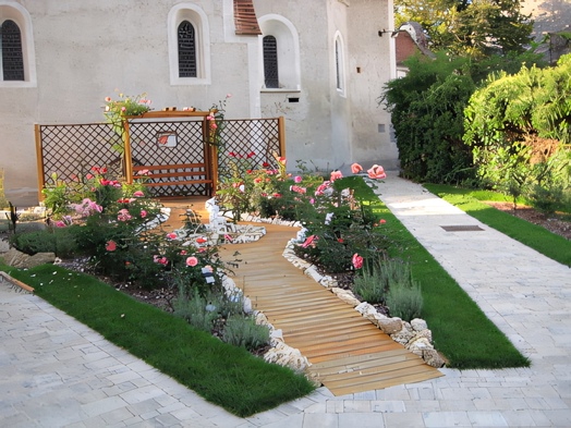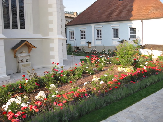 • vier blätterartige Rundungen, die durch einen fünften Kreis zusammengehalten werden, bedeuten den Kontaktpunkt zwischen Himmel und Erde und zugleich das Herz, das alle widerstrebenden Kräfte vereint und belebt.