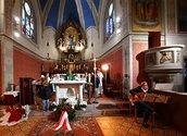 Pater Stani und die Ministaranten sind gemeinsam mit den Kindern und ihren Laternen in die Kirche eingezogen und haben diese mit ihren Lichtern erhellt. Die Martinsgeschichte wurde erzählt und die Kinder haben pantomimisch mitgespielt. Der Chor hat die Messe musikalisch begleitet.