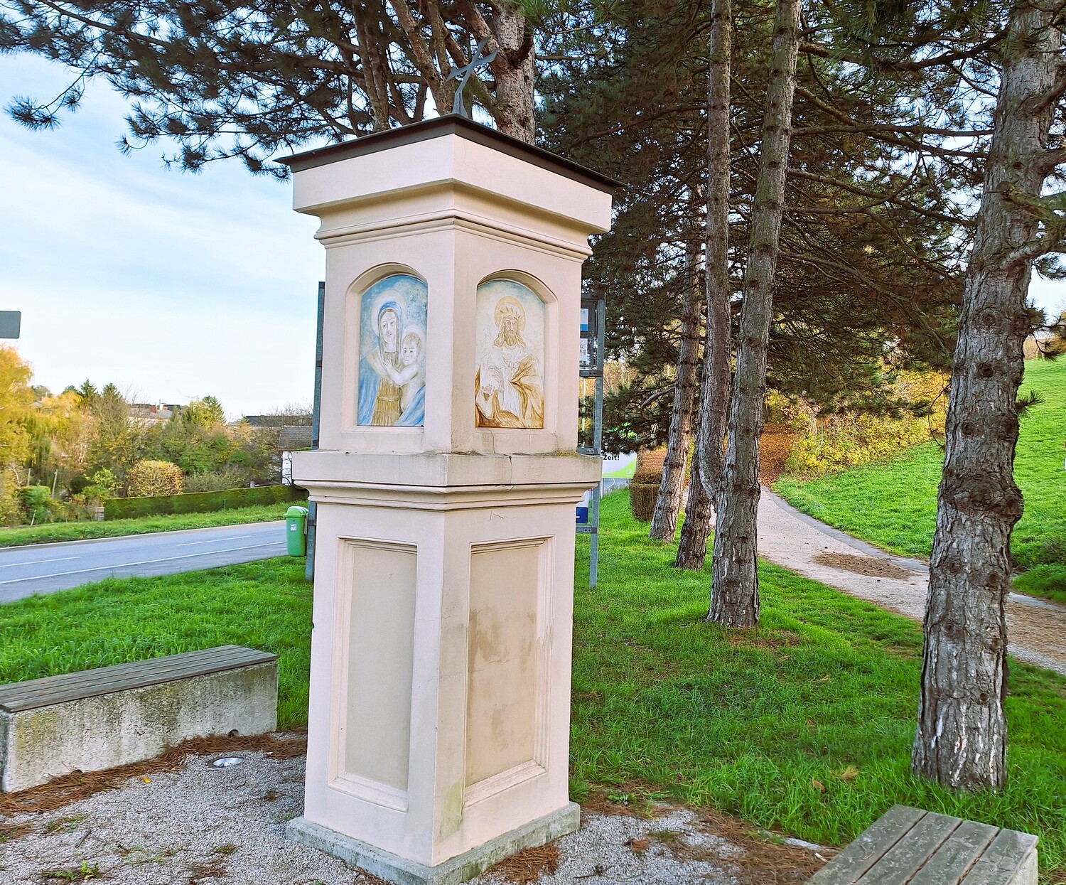 * das Türkemarterl stand urspünglich bei der Lenaugasse, wurde später zur Hauptstraße verlegt und im Zuge der Ansiedelung der ISTA zur Einfahrt bei der Hilbertprommenade versetzt. Daher liegt dieses etwas abseits des Pilgerweges 4.