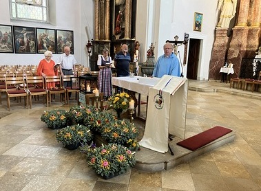 Viereinhalb Paare folgten der Einladung zur Ehejubiläumsmesse, sie bekamen nach der paarweisen Segnung schön verzierte Kerzen überreicht. Die Messe endete mit dem Absingen der Österreichischen Bundeshymne, wobei das Gotteslob für die zweite und dritte Strophe vielfach eine große Hilfe war.