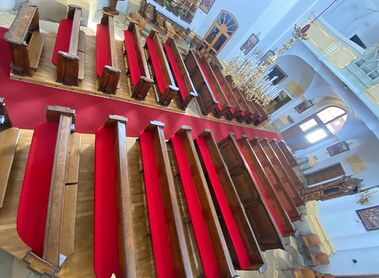 Unsere Kirchenbänke haben ein neues „Kleid“ bekommen und die Sitzauflagen strahlen jetzt wieder in sattem Rot! Danke an dieser Stelle an Johann Theermann für die handwerklich einwandfreie Arbeit!