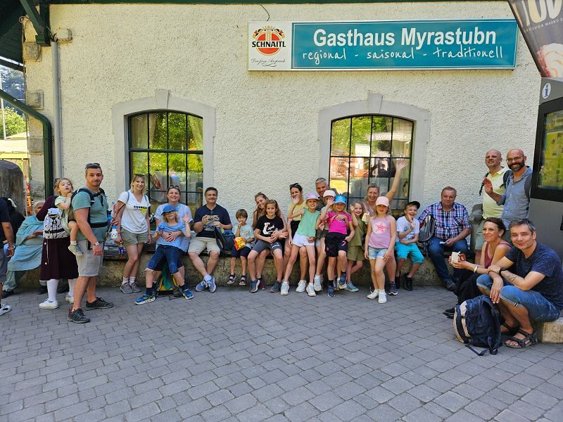 Am 21. Juni fand bei idealem Wetter der diesjährige Abschlussausflug mit den Erstkommunionkindern und Familien statt. Am Vormittag besuchten wir die Wallfahrtskirche am Mariahilfberg bei Gutenstein und machten eine kleine Wanderung zum Schneebergblick. Am Nachmittag hatten wir viel Spass bei den Myrafällen.