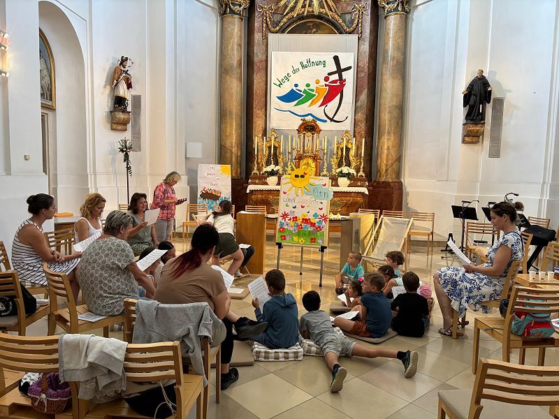 Am Sonntag war es dann soweit. Gemeinsam wurde der Gottesdienst mit der Kinder+Kirche und den Ministranten gestaltet. Zum Schluss gab es für alle einen Segen für die kommende Ferien- und Urlaubszeit.