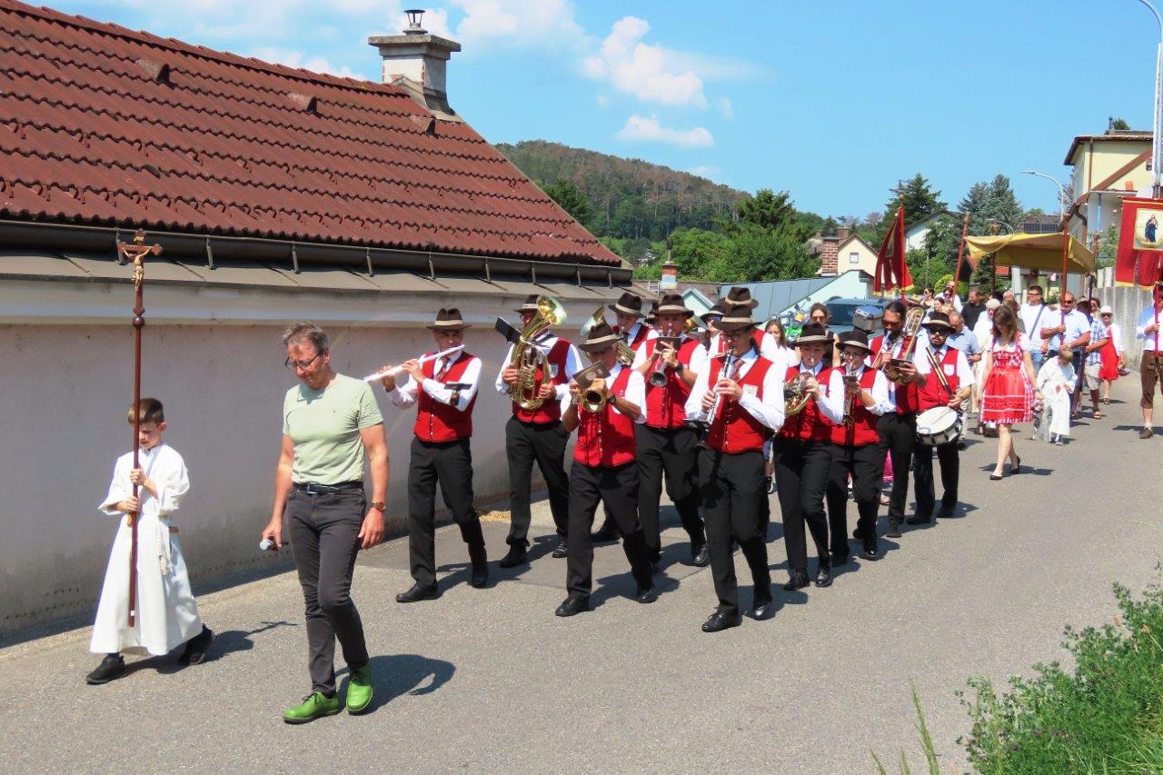Das Fronleichnamsfest endete mit dem Lied „Großer Gott wir loben dich“ begleitet vom Musikverein.