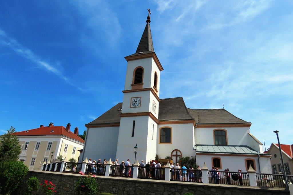 Pünktlich um 09:00 riefen die Glocken anlässlich des Fronleichnamfestes in die festlich geschmückte Pfarrkirche. Pater Adalbero, in Vertretung unseres Hr. Pfarrer, der zur selben Zeit in Hirtenberg die Zeremonien leitete, zelebrierte den Festgottesdienst, der sich mehr Gläubige verdient hätte.