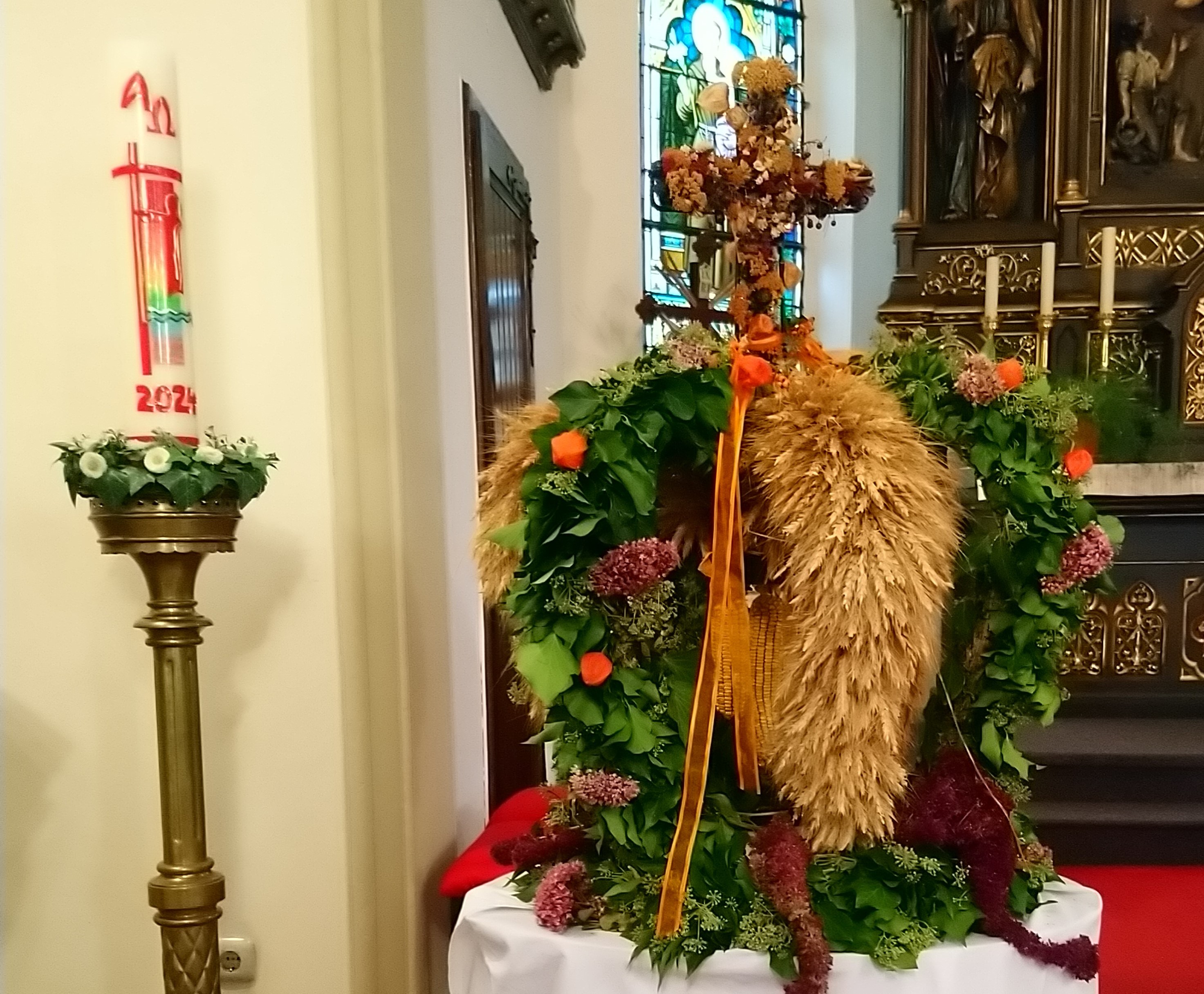 In der Pfarre Hirtenberg feierten wir bei schönem Wetter unser Erntedank, aber dieses Mal in der Kirche und nicht wie gewohnt im Pfarrzentrum.