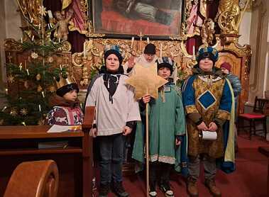 Bei der Vorabendmesse in der Kirche Klein-Neusiedl wurden unsere Sternsinger von Pfarrer Helmut gesegnet und ausgesandt.