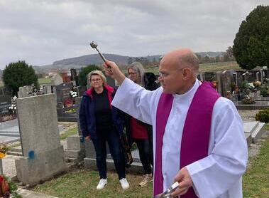 Am Allerseelentag wurden heuer die Gräber von Vikar Eugen gesegnet. Zur Feier des Gedenkens an die Verstorbenen versammelten sich viele Gläubige beim großen Kreuz auf unserem Friedhof. Während der Segnung wurde der Rosenkranz für unsere lieben Verstorbenen gebetet.